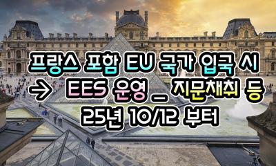 [프랑스] 프랑스 포함 EU 국가 입국 시, EES (Entry/Exit system) 운영 ( 10/12 부터 ) 안내 (지문 채취 등) - 25년 9/12 현재