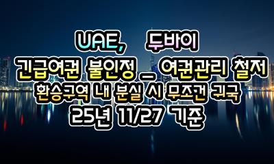[UAE] 두바이, 긴급여권 불인정에 따른 여권관리 철저 ( 환승 구역 내 분실 시 무조건 귀국 ) - 25년 11/27 현재