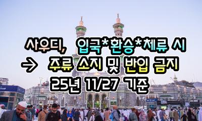 [사우디아라비아] 사우디, 입국/환승/체류 시 -> 주류 소지·반입 금지 - 25년 11/27 현재