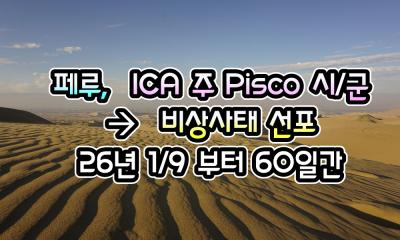 [페루] Ica주 Pisco시,군 -> 비상사태 선포 ( 1/9 부터 60일간 ) - 26년 1/9 현재