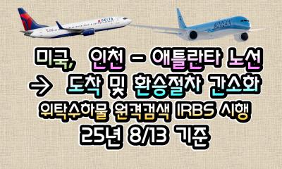 [미국] 인천 - 애틀란타 노선, 도착 및 환승 절차 간소화 - 위탁수하물 원격 검색 ( IRBS ) 시행 - 25년 8/13 현재