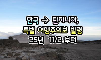 [탄자니아] 한국 -> 탄자니아, 특별여행주의보 발령 ( 11/2 부터 ) - 25년 11/5 현재