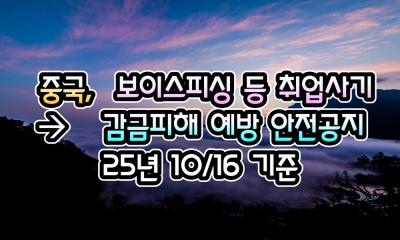 [중국] 중국, 보이스피싱 등 취업사기 감금 피해 예방 안전공지 - 25년 10/16 현재