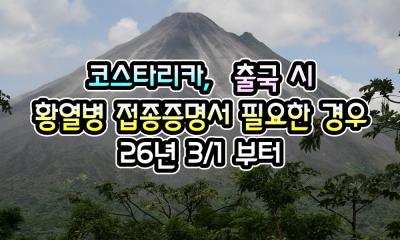 [코스타리카] 코스타리카, 출국 시 -> 황열병접종증명서가 필요한 경우 ( 3/1 부터 ) - 26년 3/7 현재