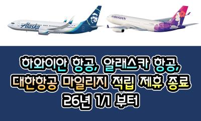 [하와이안항공/알래스카항공] 하와이안항공(HA)/알래스카항공(AS) -> 대한항공 ( KE ) 마일리지 제휴 변경 및 종료 ( 26년 1/1 부터 ) - 25년 10/31 현재