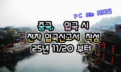[중국] 중국, 입국 시 전자 입국 신고서 ( PC 또는 모바일 기준 ) 의무 시행 ( 11/20 부터 ) - 25년 12/24 현재