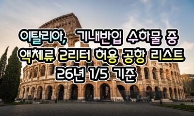 [이탈리아] 이탈리아, 액체류 기내 휴대 수하물 반입 허용 (2리터까지) 공항 리스트 - 26년 1/5 현재