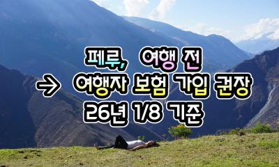 [페루] 페루, 여행 전 여행자 보험 가입 요망 - 26년 1/8 현재