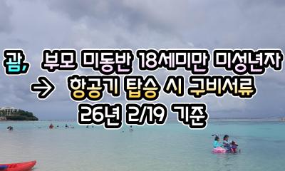 [괌] 괌, 보호자 미동반 -> 미성년자 ( 만 18세 미만 ) 항공기 탑승 시 구비서류 - 26년 2/24 현재