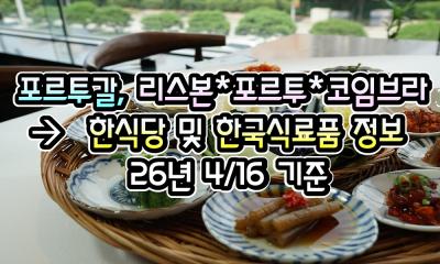 [포르투갈] 리스본/포르투/코임브라, 한식당 및 한국 식품점 정보 - 26년 4/16 현재