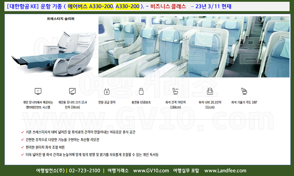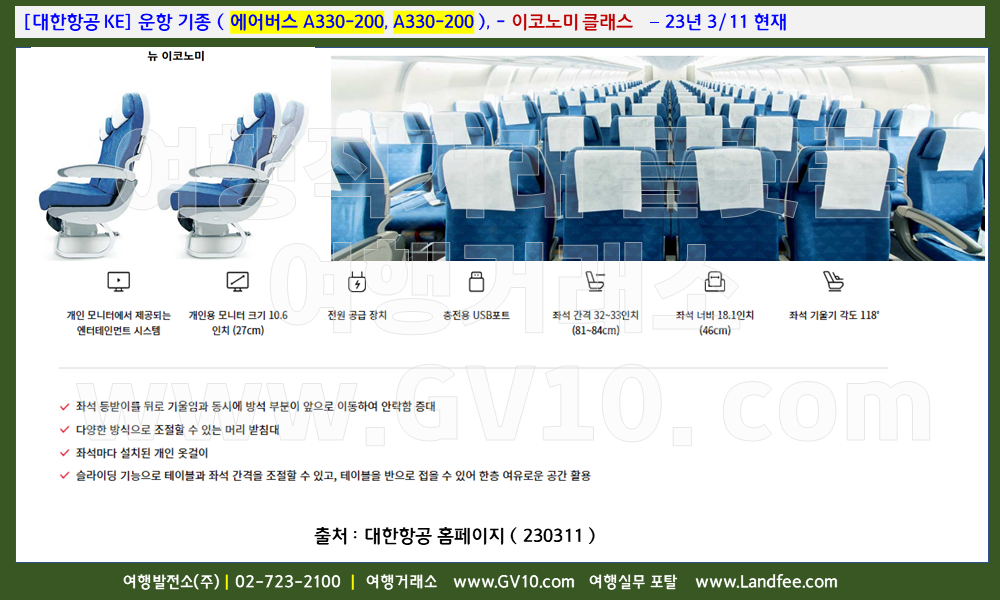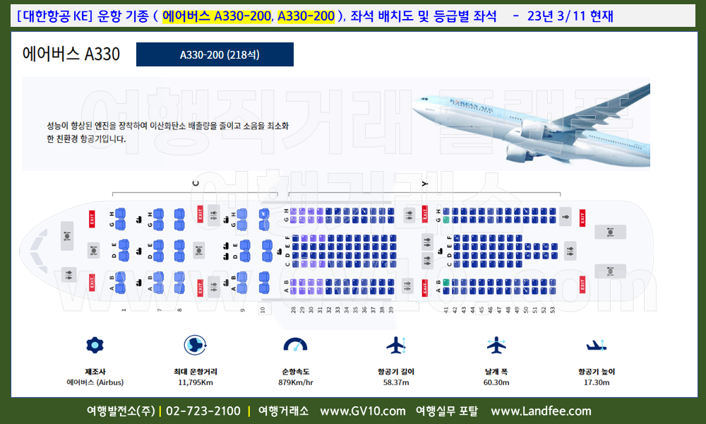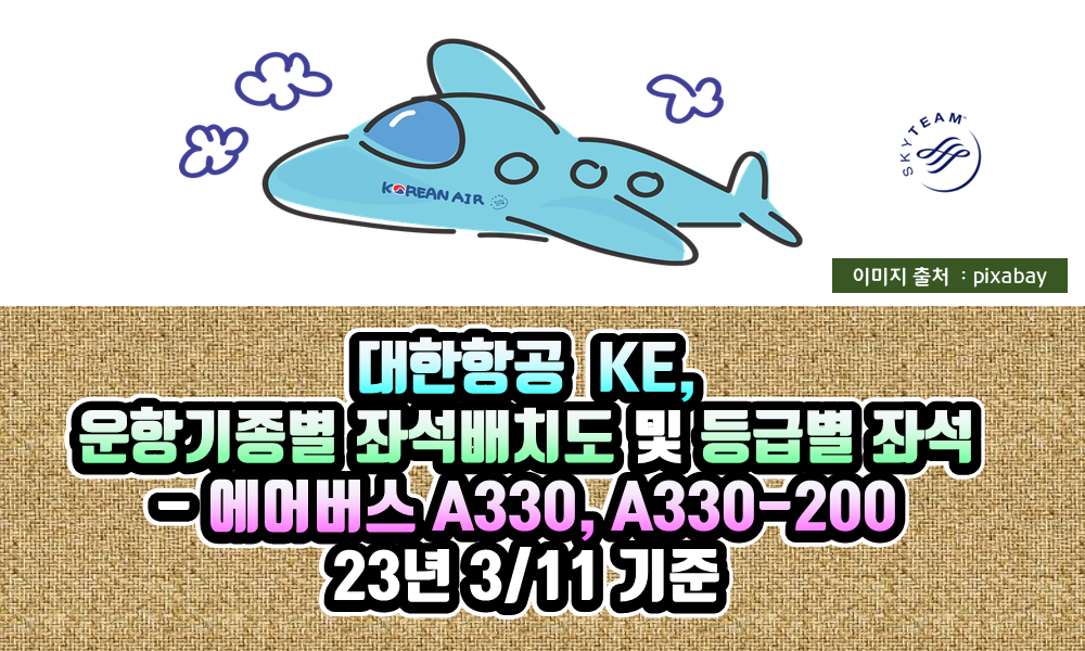 [대한항공 KE] 운항 기종 ( 에어버스 A330-200, A330-200 ), 좌석 배치도 및 등급별 좌석 - 23년 3/11 현재