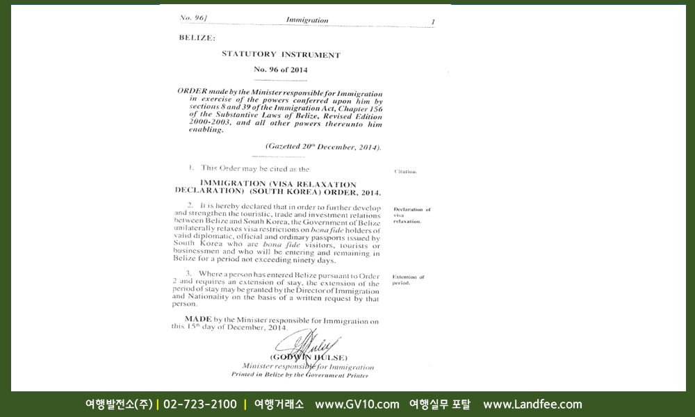[벨리즈] 벨리즈, 입국 시 비자정보 - 15년 1/10 현재