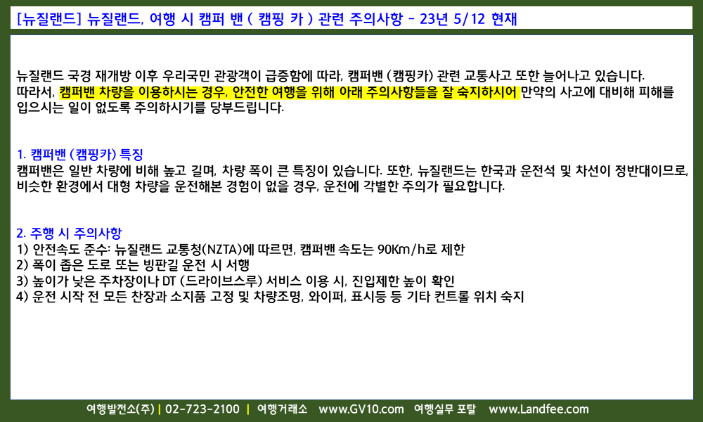 [뉴질랜드] 뉴질랜드, 여행 시 캠퍼 밴 ( 캠핑 카 ) 관련 주의사항 - 23년 5/12 현재