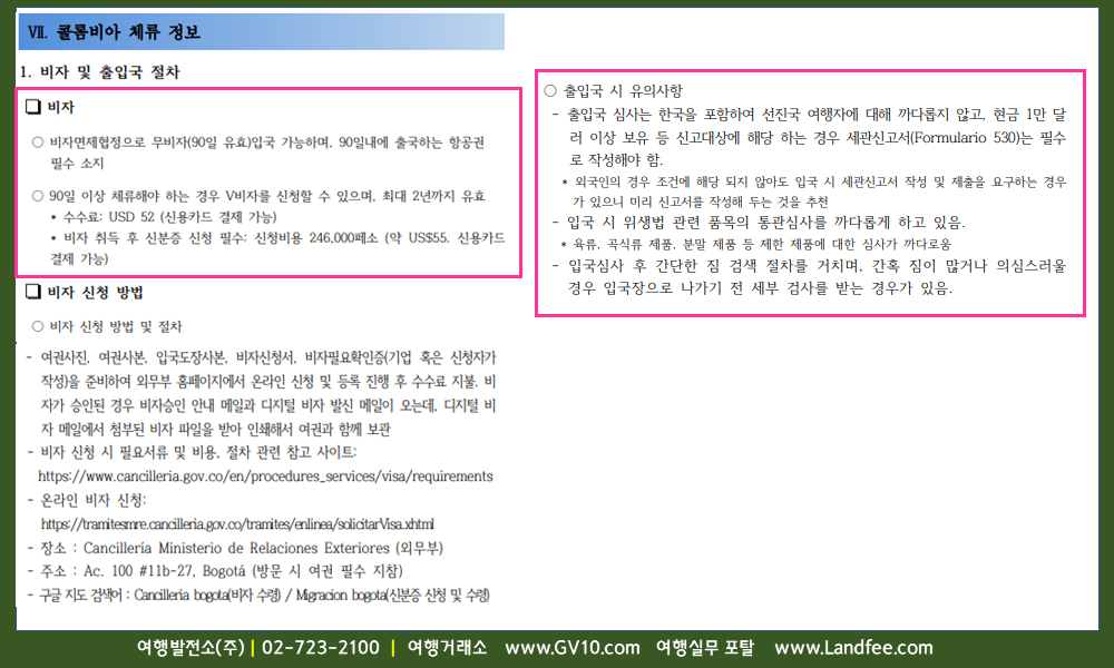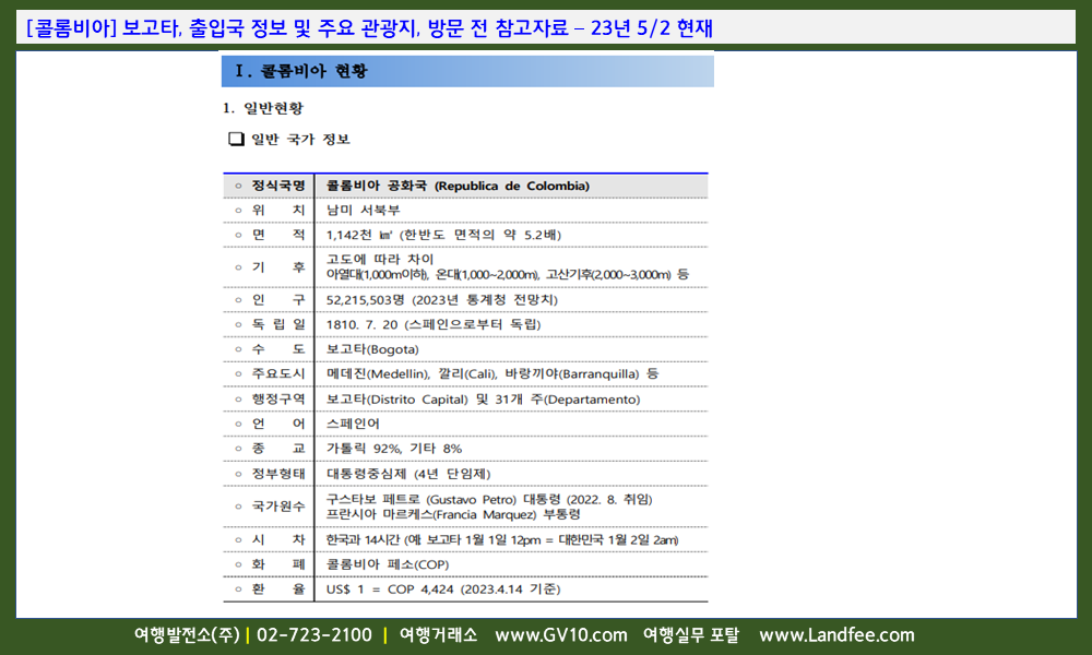 [콜롬비아] 보고타, 출입국 정보 및 주요 관광지, 방문 전 참고자료 – 23년 5/2 현재
