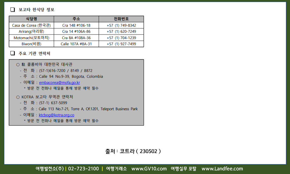 중남미 > 콜롬비아 > 보고타 > 현지정보