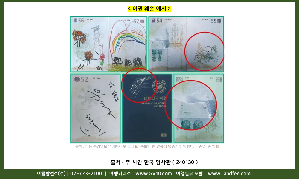 [한국] 훼손된 여권 -> 여권 재발급 사용 요망 - 24년 2/1 현재