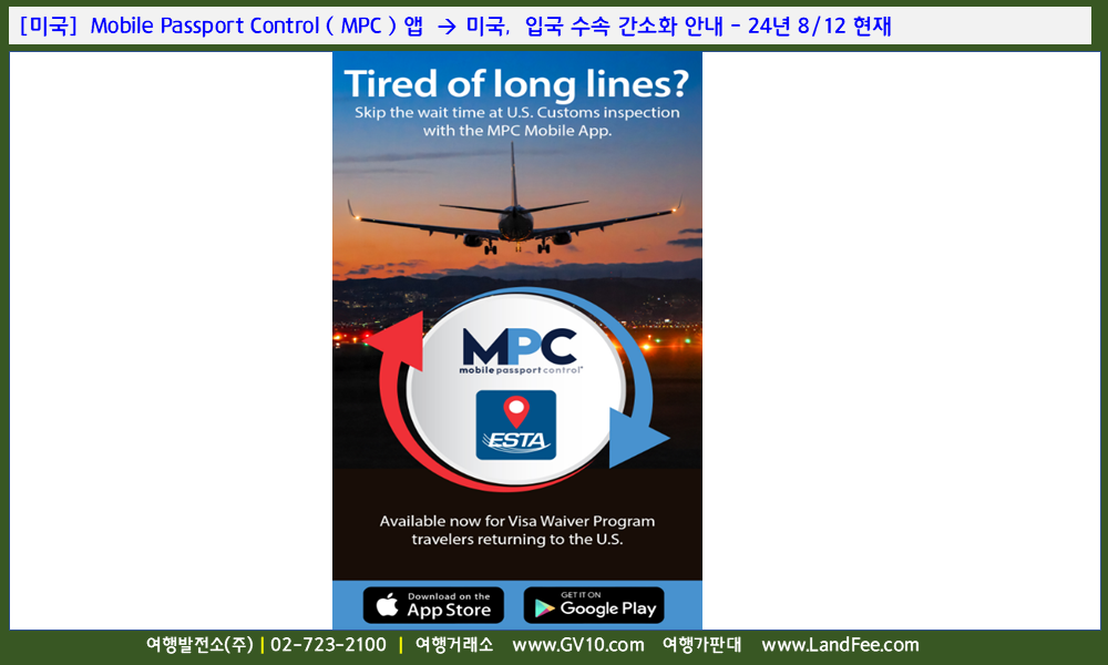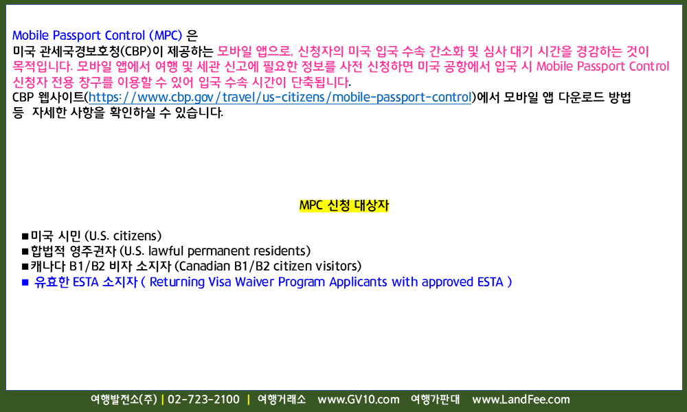 [미국] Mobile Passport Control ( MPC ) 앱 -> 미국, 입국 수속 간소화 안내 - 24년 8/12 현재