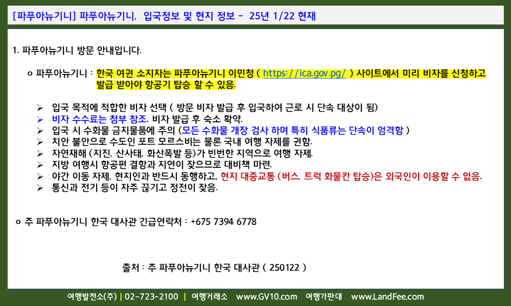 [파푸아뉴기니] 파푸아뉴기니, 입국정보 및 현지 정보 - 25년 1/22 현재