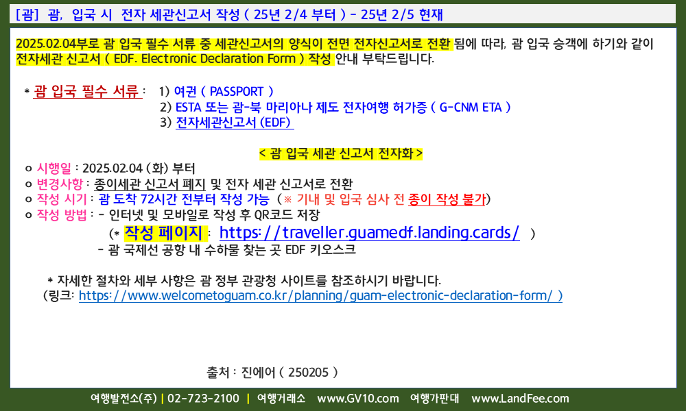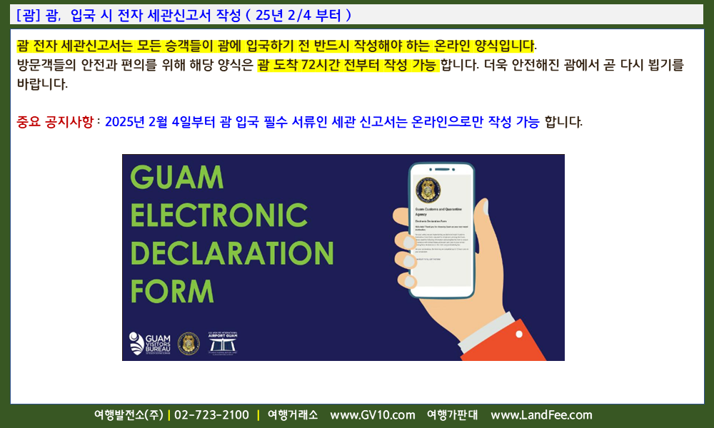 [괌] 괌, 입국 시 전자 세관신고서 작성 ( 25년 2/4 부터 ) - 25년 2/5 현재