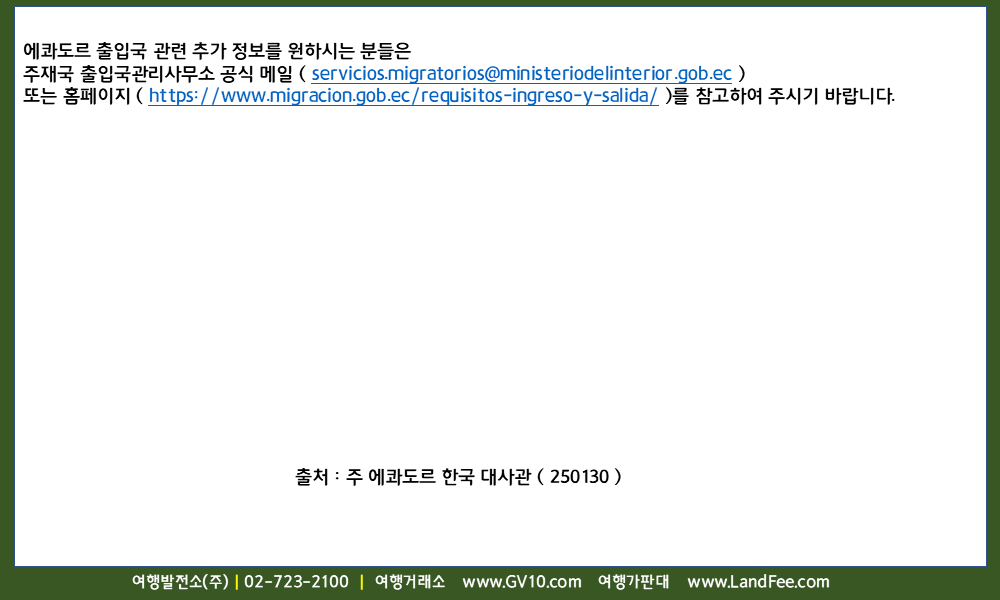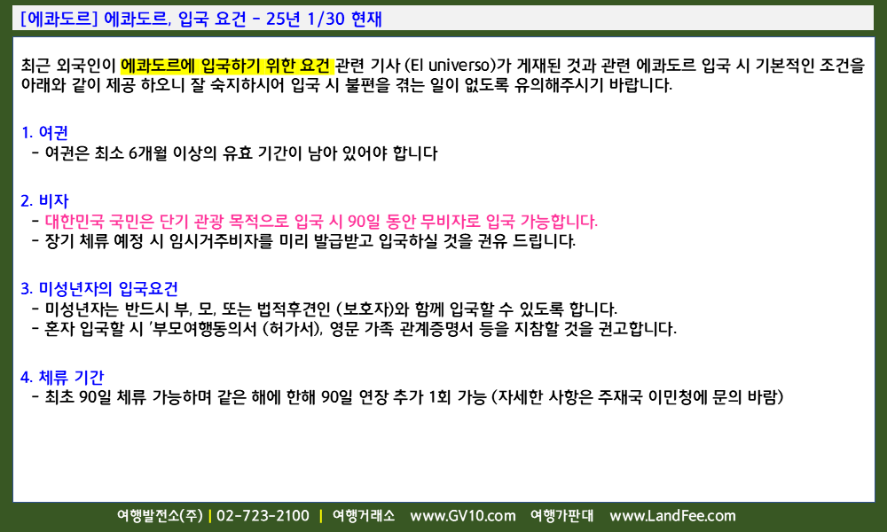 [에콰도르] 에콰도르, 입국 요건 - 25년 1/30 현재