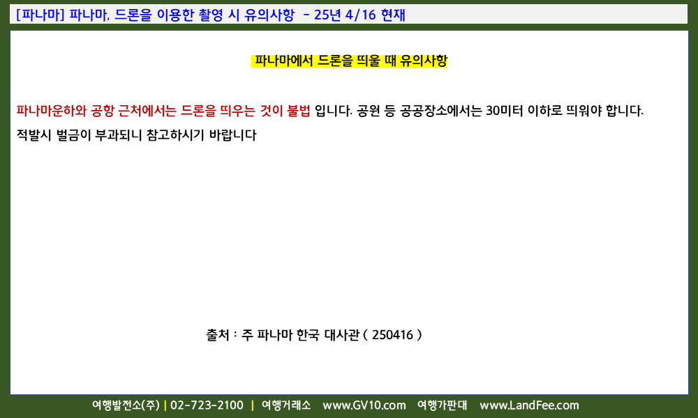 [파나마] 파나마, 드론을 이용한 촬영 시 유의사항 - 25년 4/16 현재