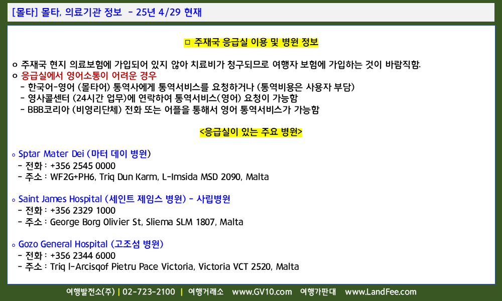 [몰타] 몰타, 의료기관 정보 - 25년 4/29 현재