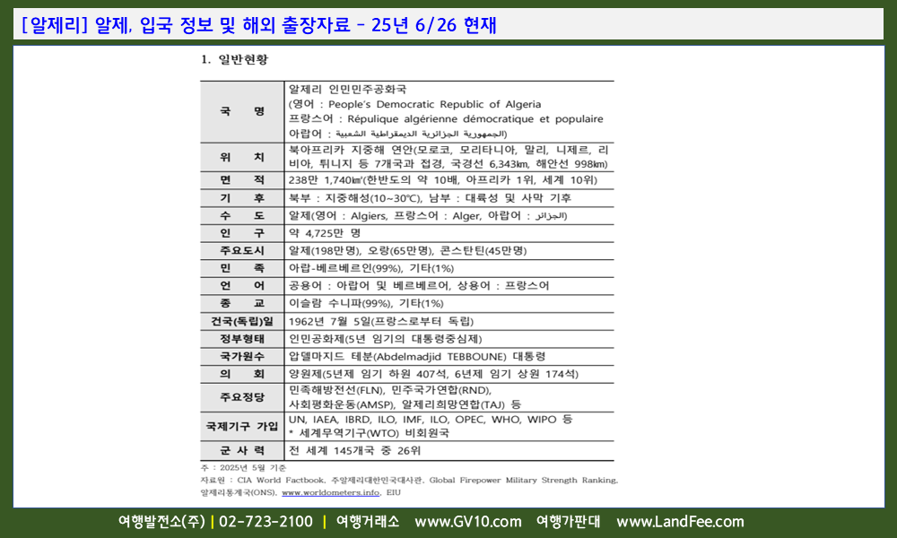 [알제리] 알제, 입국정보 및 해외 출장자료 - 25년 6/26 현재