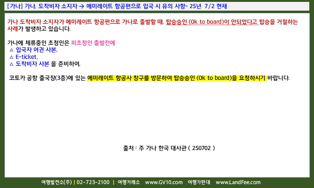 [가나] 가나, 도착비자 소지자 -> 에미레이트 항공편으로 입국 시 유의 사항- 25년 7/2 현재