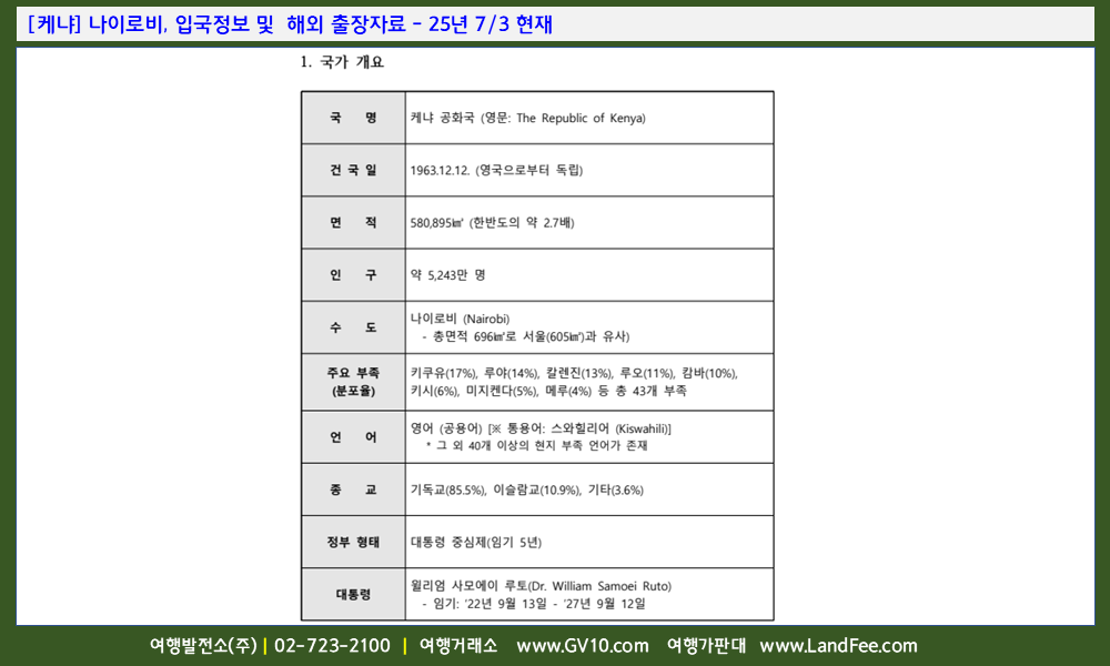 [케냐] 나이로비, 입국정보 및 해외 출장자료 - 25년 7/3 현재
