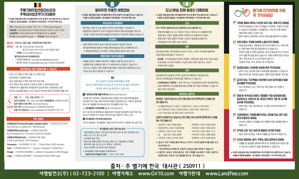 [벨기에] 벨기에, 안전여행 길잡이 - 25년 9/11 현재