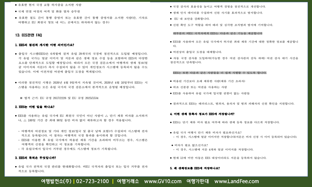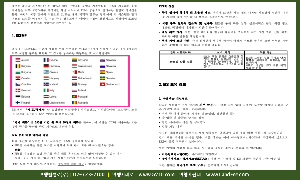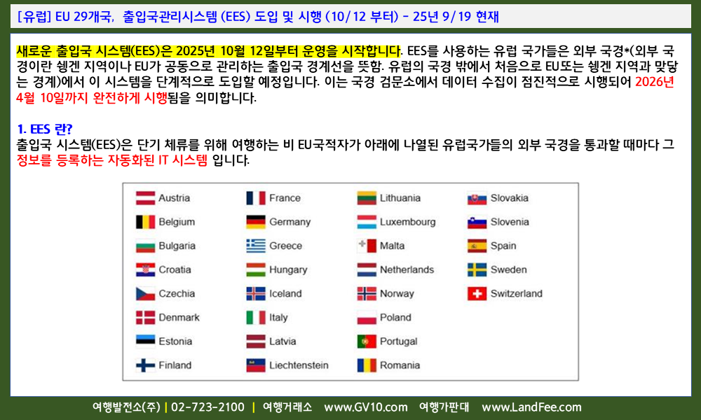 [유럽] EU 29개국, 출입국관리시스템 (EES) 도입 및 시행 (10/12 부터) - 25년 9/19 현재