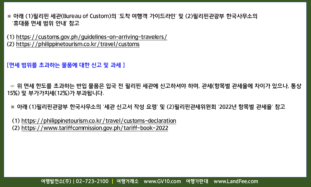 (1) https://philippinetourism.co.kr/travel/customs-declaration