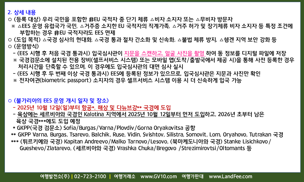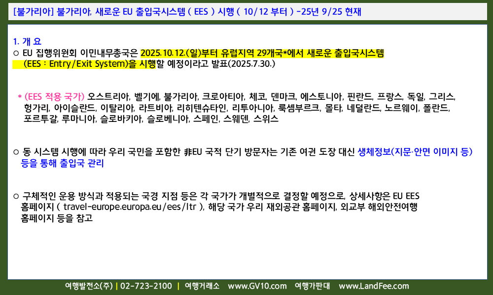 [불가리아] 불가리아, 새로운 EU 출입국시스템 ( EES ) 시행 ( 10/12 부터 ) -25년 9/25 현재