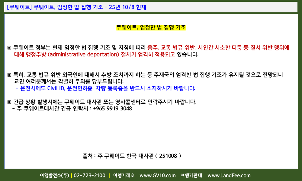 [쿠웨이트] 쿠웨이트, 엄정한 법 집행 기조 - 25년 10/8 현재