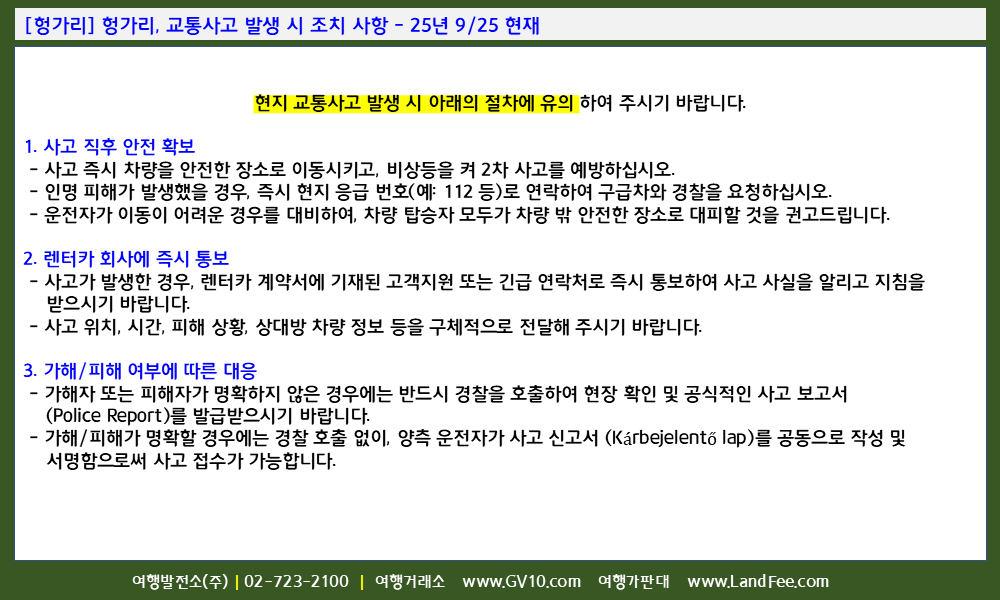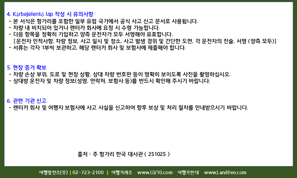 [헝가리] 헝가리, 교통사고 발생 시 조치 사항 - 25년 9/25 현재