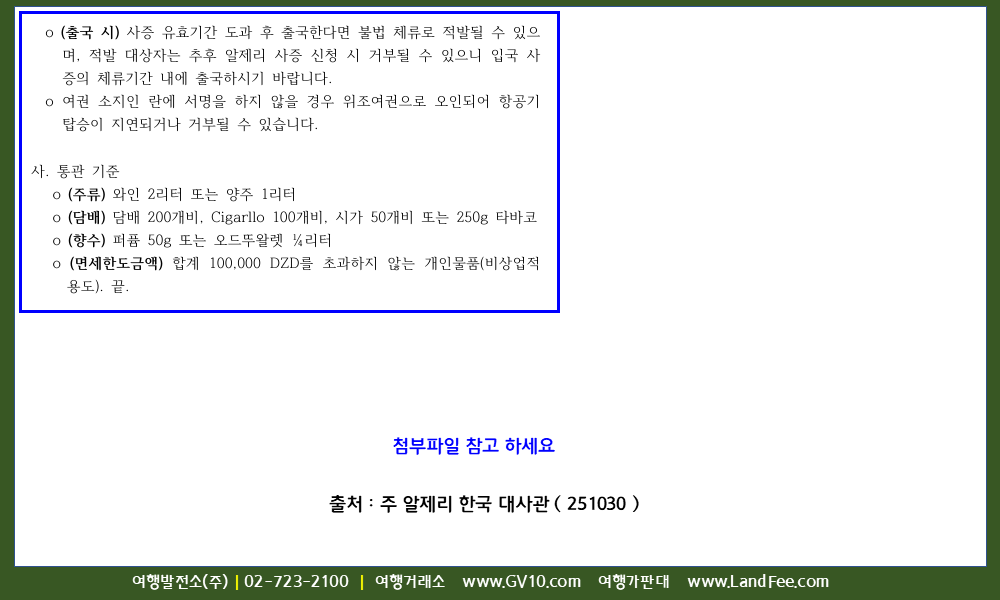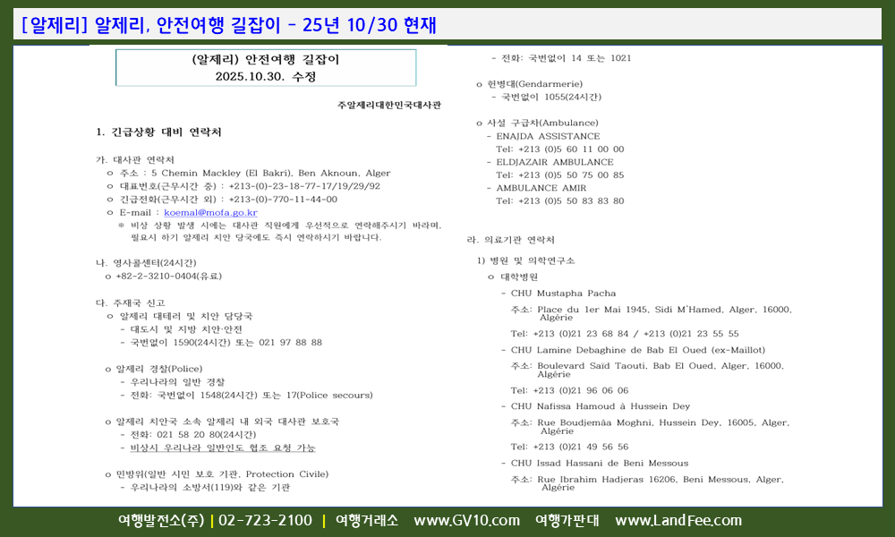 [알제리] 알제리, 안전여행 길잡이 - 25년 10/30 현재