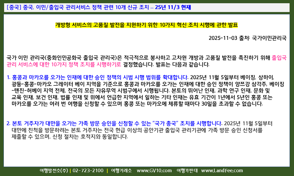 외국인 입국 카드 온라인 작성 채널 ( 25년 11/20 부터 )