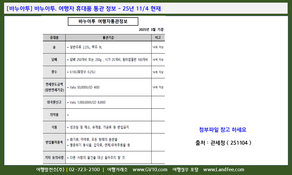 [바누아투] 바누아투, 여행자 휴대품 통관 정보 - 25년 11/4 현재