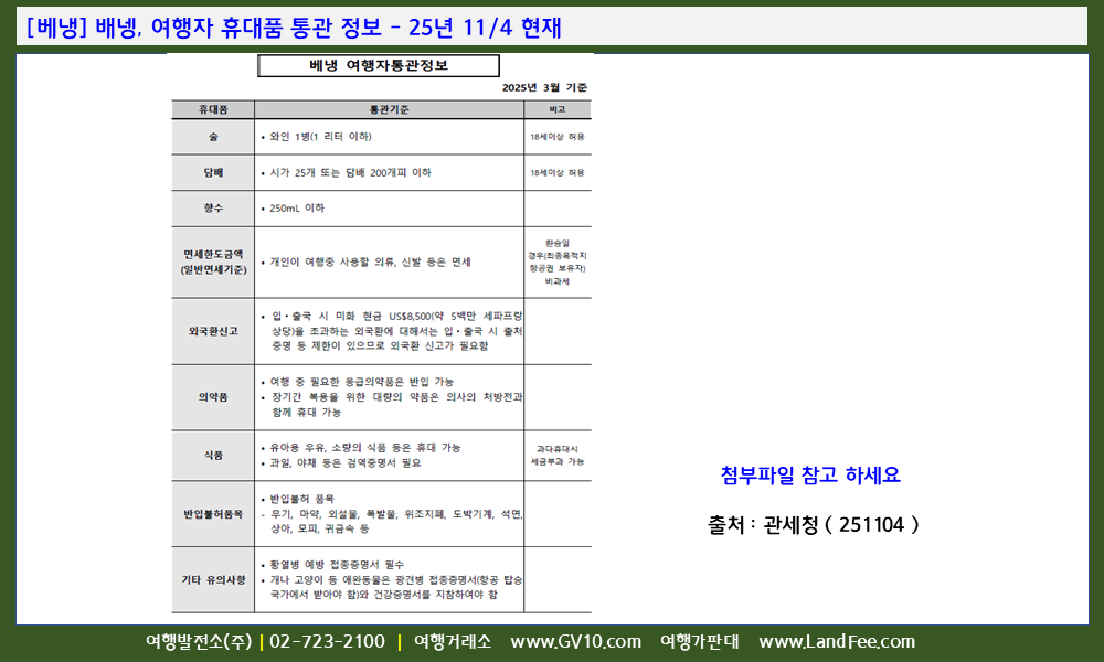 [베냉] 배넹, 여행자 휴대품 통관 정보 - 25년 11/4 현재