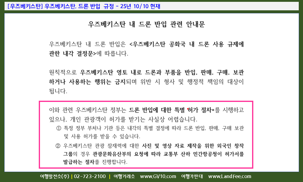 [우즈베키스탄] 우즈베키스탄, 드론 반입 규정 - 25년 10/10 현재