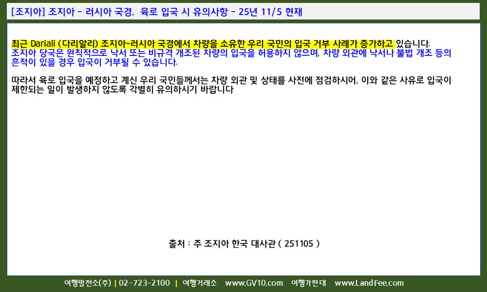 [조지아] 조지아 - 러시아 국경, 육로 입국 시 유의사항 - 25년 11/5 현재