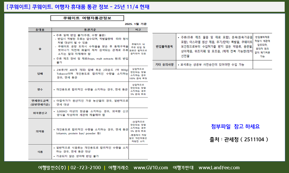 [쿠웨이트] 쿠웨이트, 여행자 휴대품 통관 정보 - 25년 11/4 현재
