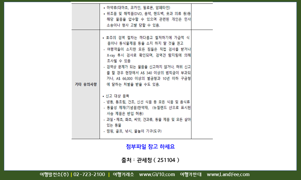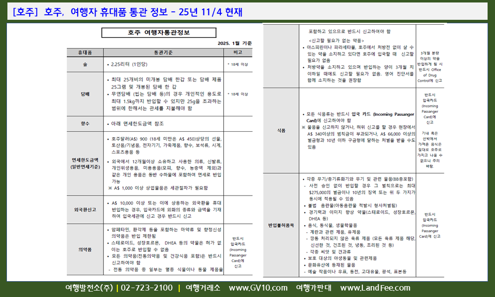 [호주] 호주, 여행자 휴대품 통관 정보 - 25년 11/4 현재