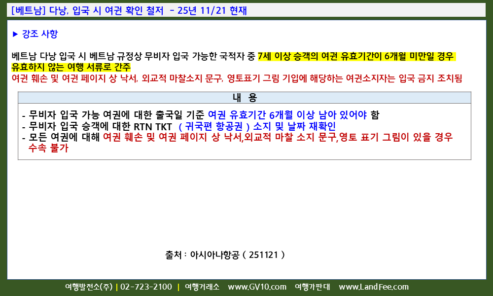 [베트남] 다낭, 입국 시 여권 확인 철저 - 25년 11/21 현재