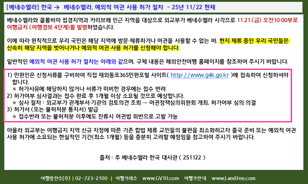 [베네수엘라] 한국 -> 베네수엘라, 예외적 여권 사용 허가 절차 - 25년 11/22 현재