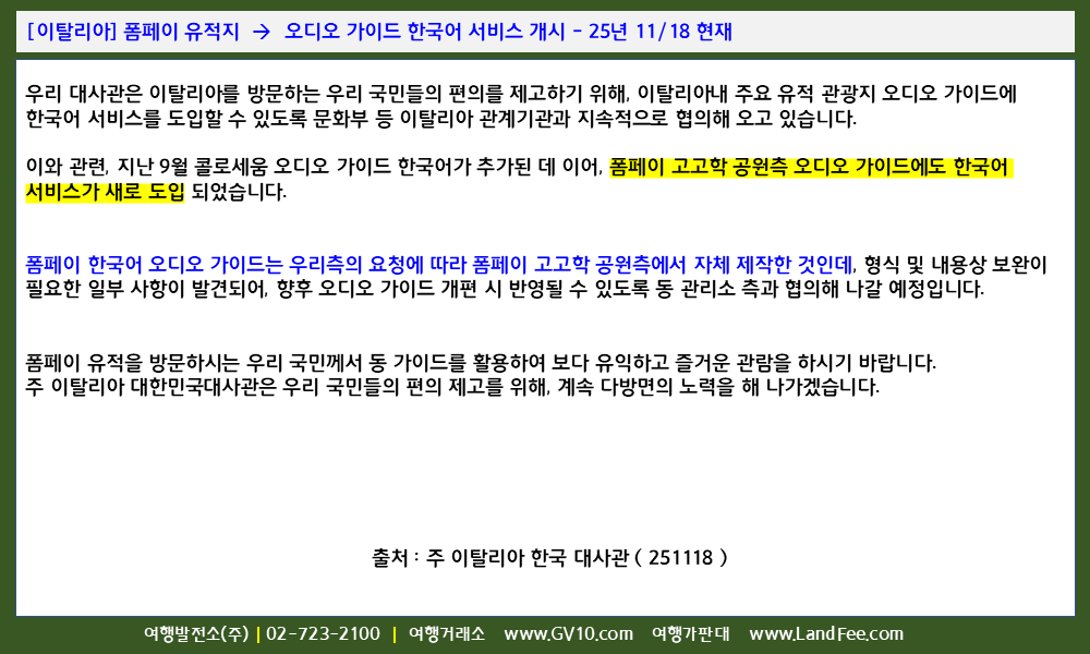 [이탈리아] 폼페이 유적지 -> 오디오 가이드 한국어 서비스 개시 - 25년 11/18 현재