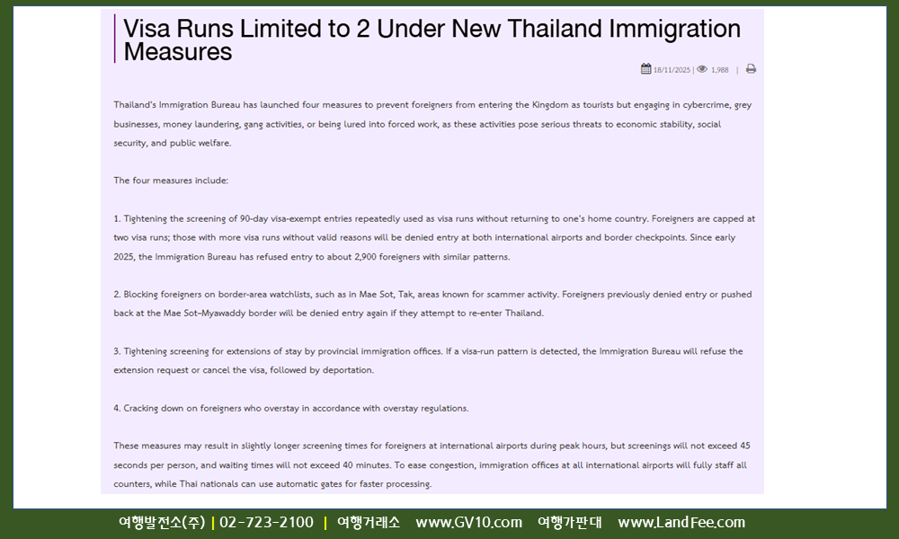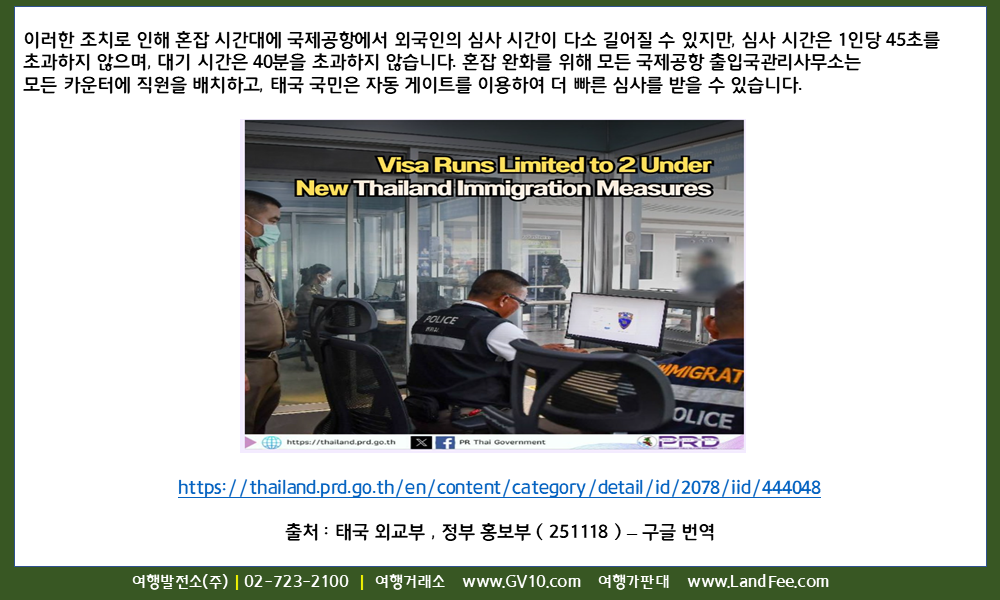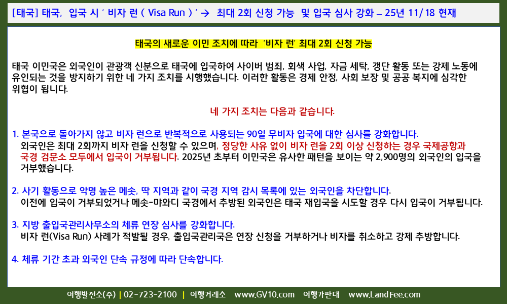 [태국] 태국, 입국 시 < 비자 런 , Visa Run > -> 최대 2회 신청 가능 및 입국 심사 강화 – 25년 11/18 현재