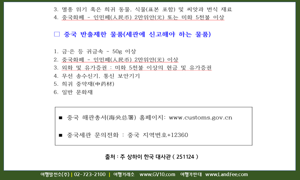 [중국] 중국, 입국 시 세관 통관 금지 및 제한 물품 목록 - 25년 11/24 현재