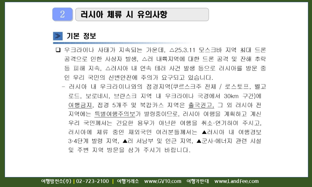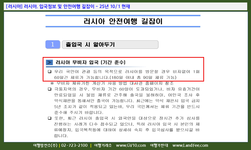 [러시아] 러시아, 입국정보 및 안전여행 길잡이 - 25년 10/1 현재