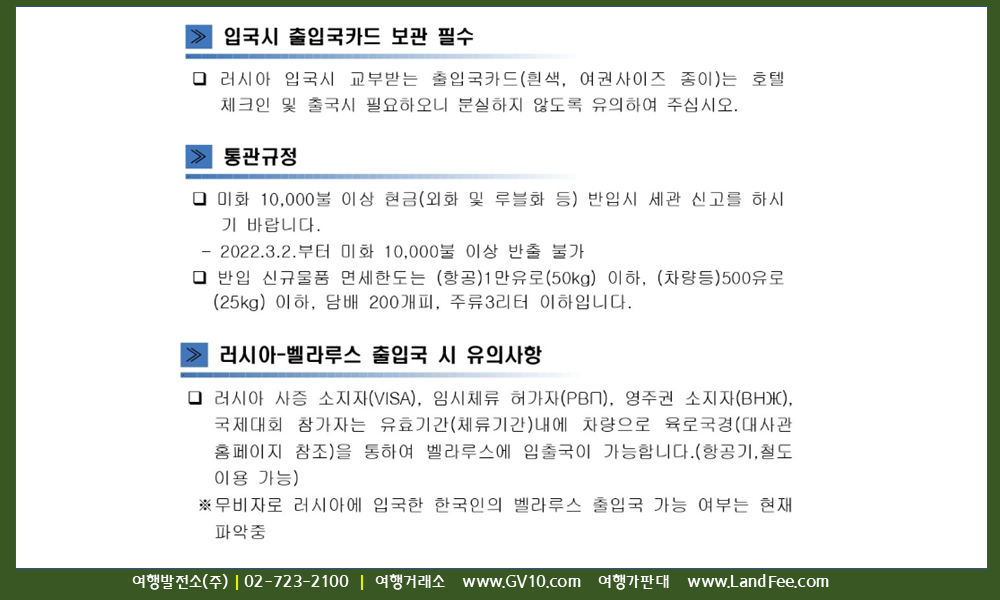 유럽 > 러시아 > 모스크바/상트페테르부르크/블라디보스톡 > 출입국정보